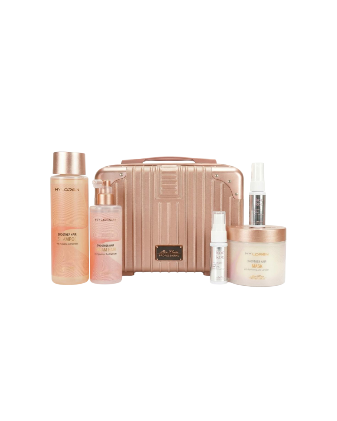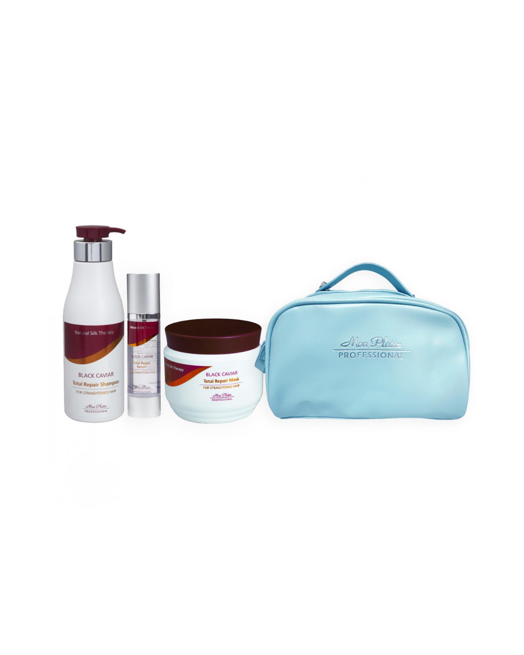 מארז טיפוח לשיער שמרכז שמפו, מסכה וסרום עם תיק קוסמטיקה, לשיקום, ריכוך וברק אחרי טיפולים, צבע או החלקה.